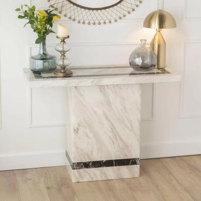 An elegant console table to grace any room, this piece features a cream coloured engineered marble top combined with a pedestal base. Perfectly flat to fit in compact spots and small nooks, this cream coloured table is sure to become a lasting piece of your home.