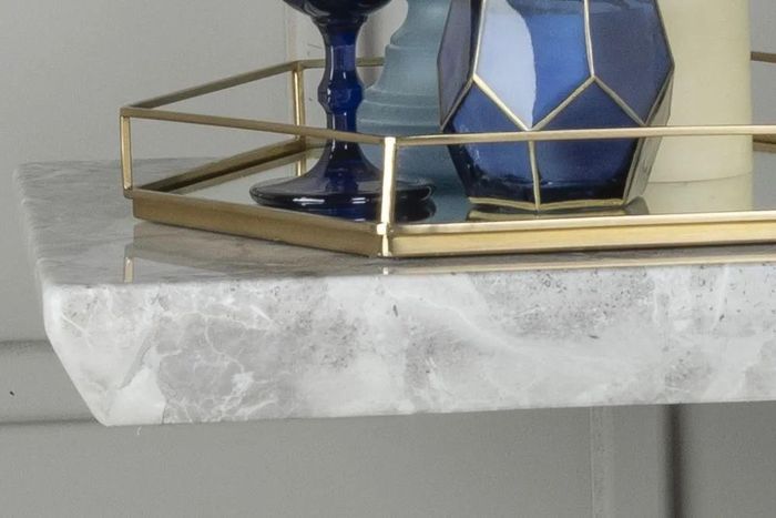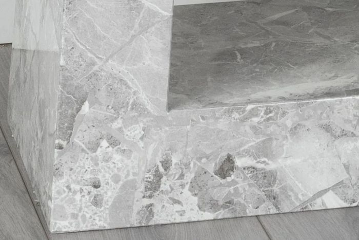 This stylish console table will complete your living space with its sophisticated finish. Crafted from engineered marble, this stunning piece features a grey rectangular top with triangular pedestal base. It is a perfect accent for any modern home that doesn't require storage. Intricate yet simple, this sleek console table will add elegance to any room.