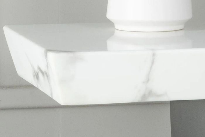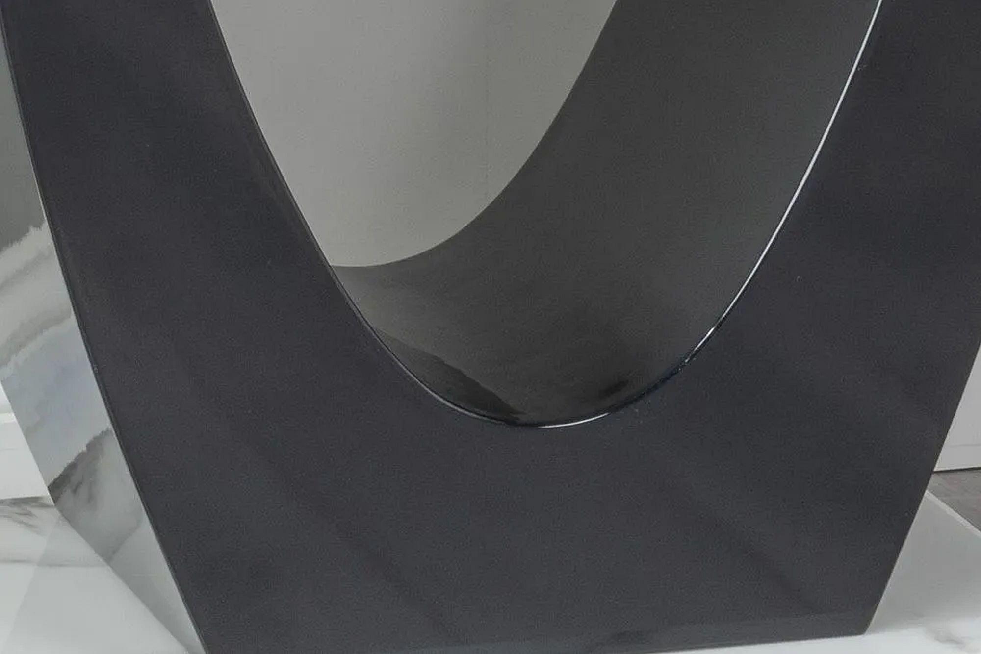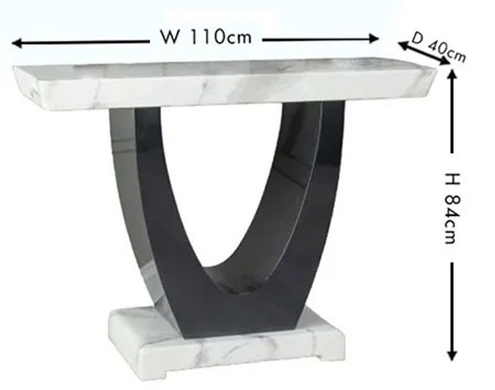 This sleek and modern table adds a touch of style to any home. The engineered marble top gives it a chic look, and the white and black high gloss finish captivates with its eye-catching contrast. Its rectangular top is perfect for showcasing decor items, while its flat packed design makes for easy assembly. Make an elegant statement in any living space with this stunning console table.