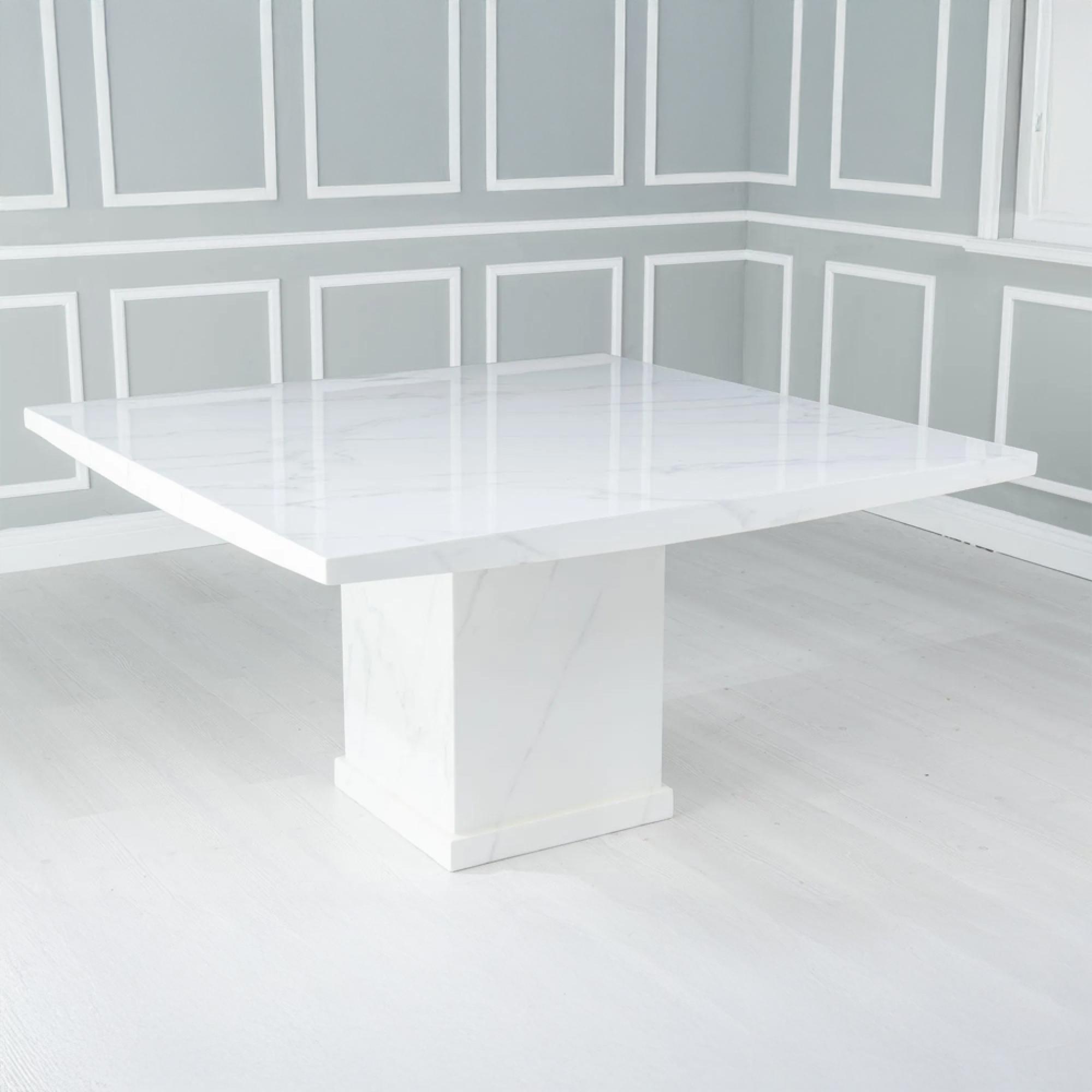 Turin 140cm Square White Marble Dining Table