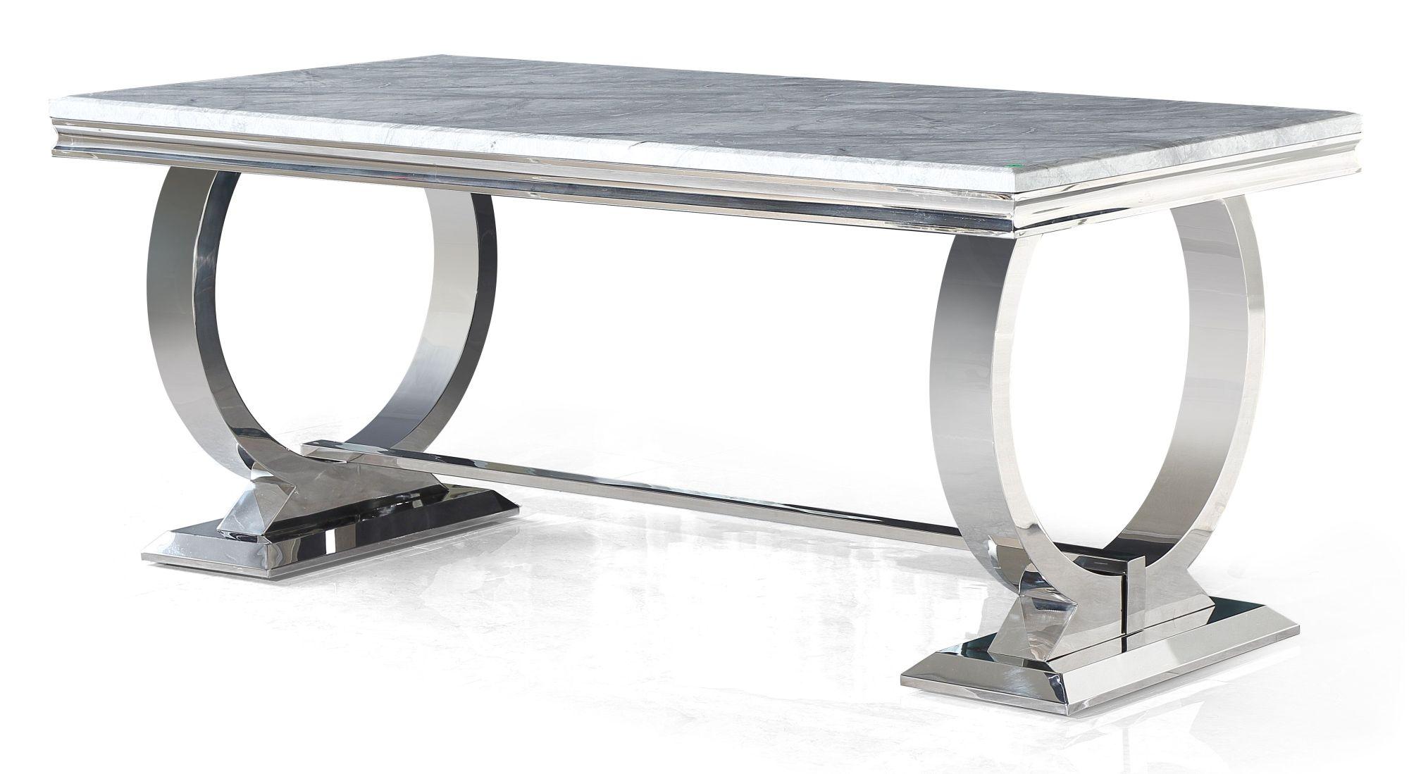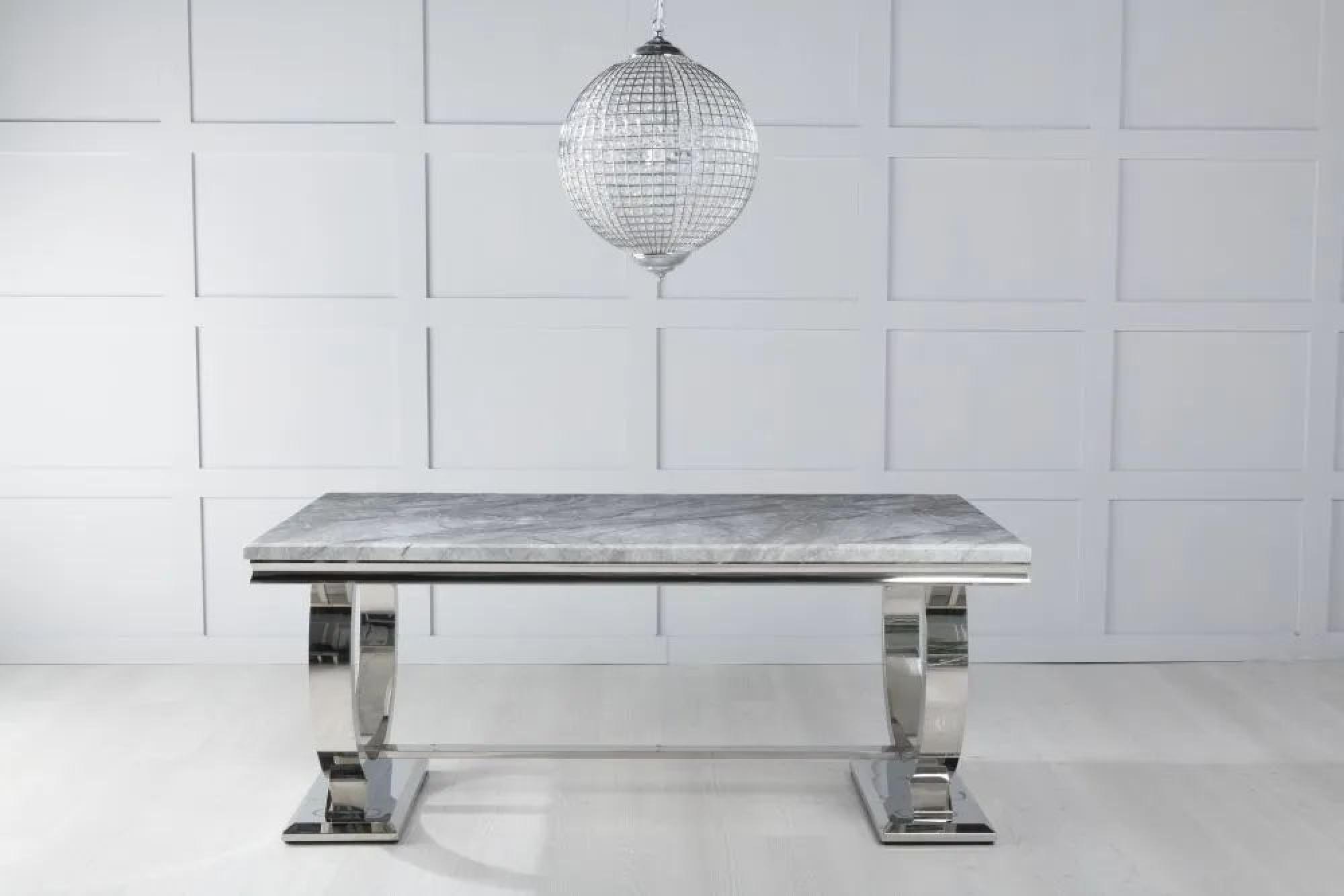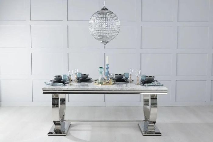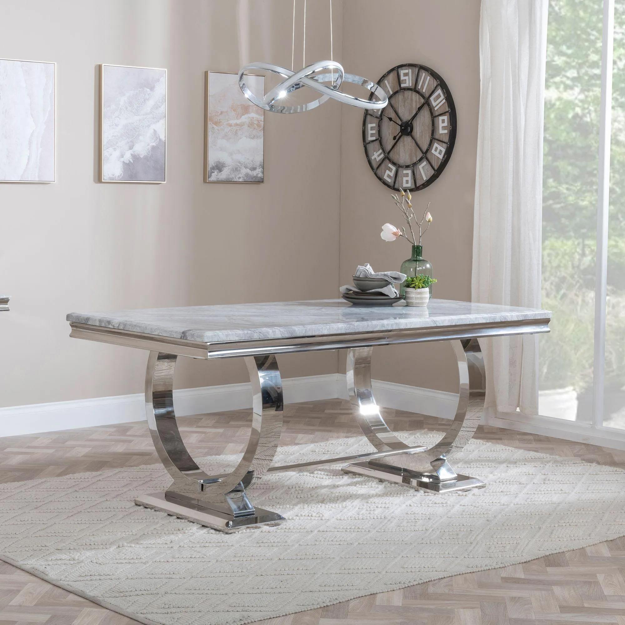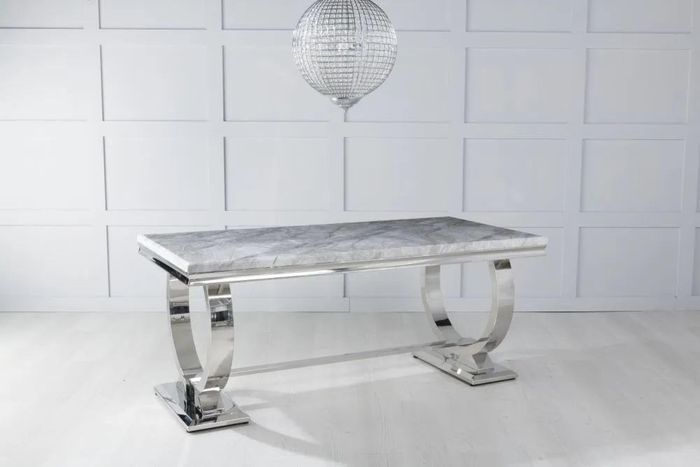 Glacier Grey Marble and Chrome Dining Table