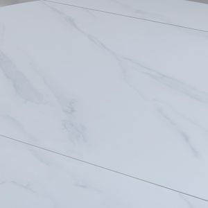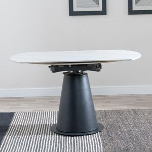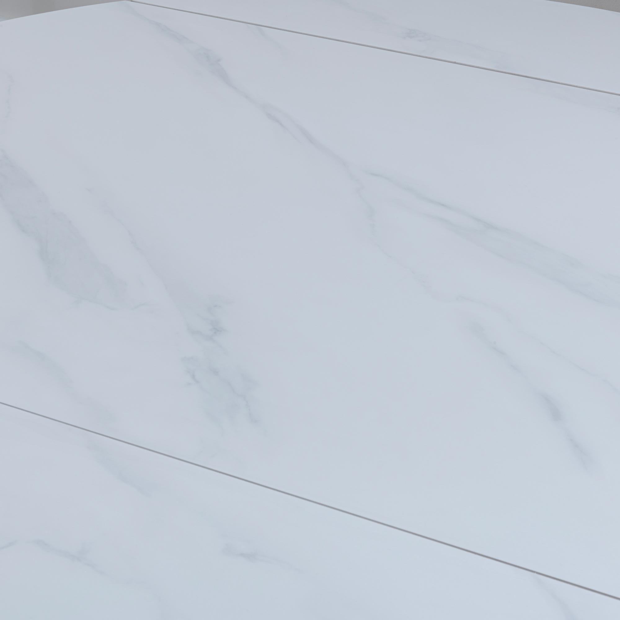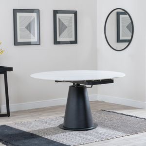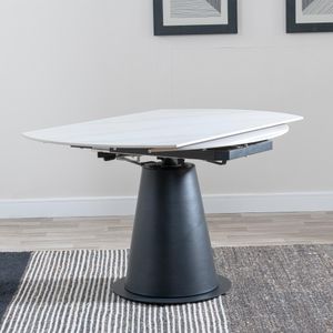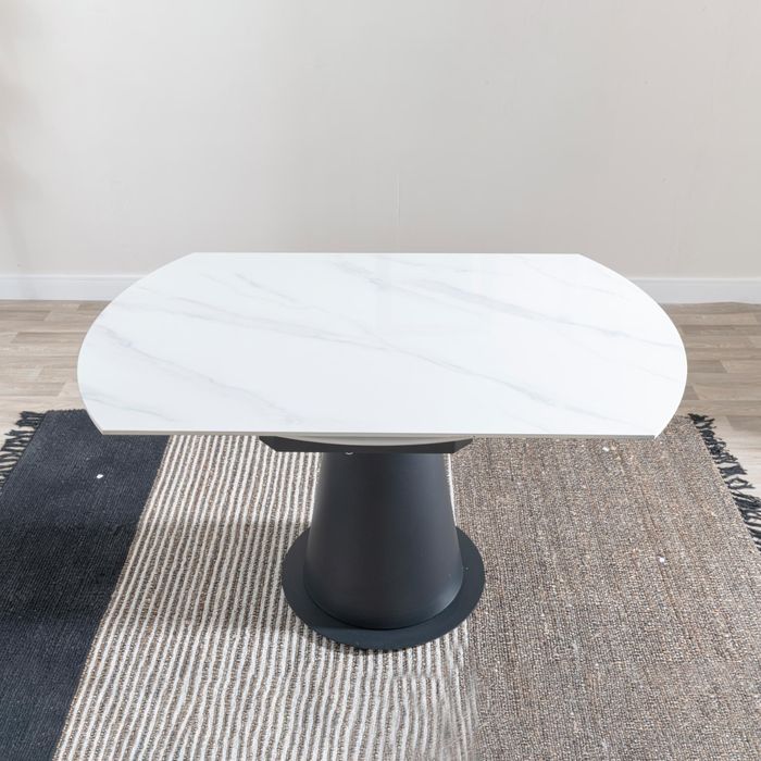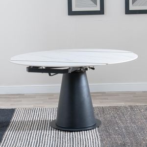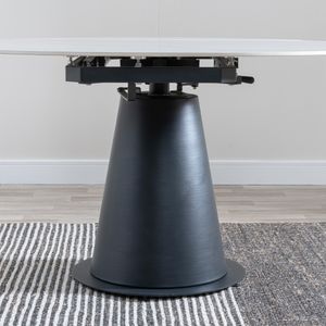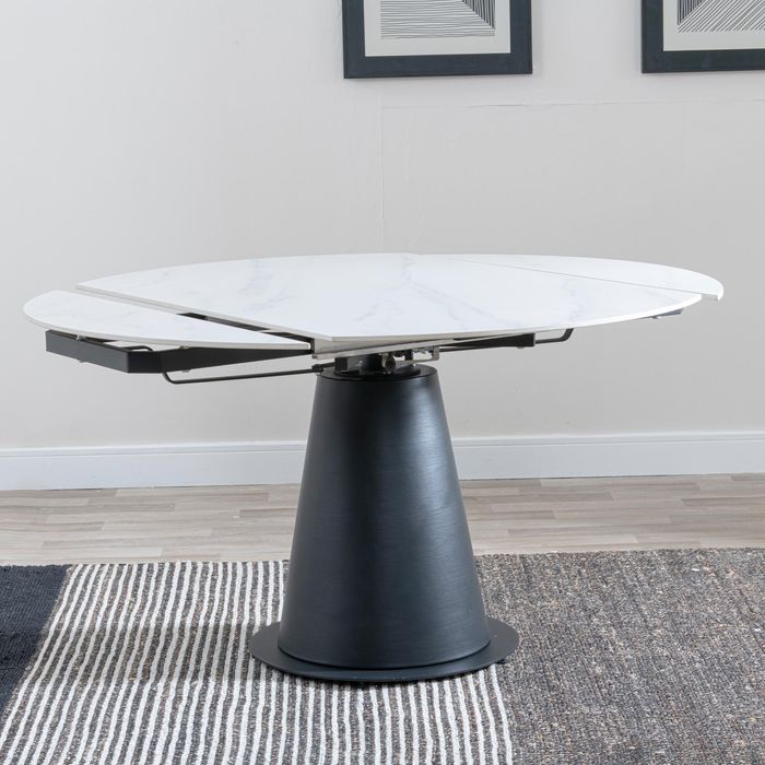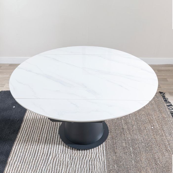 Carrara 135cm White Ceramic Round Extending Dining Table with Black Pedestal Base