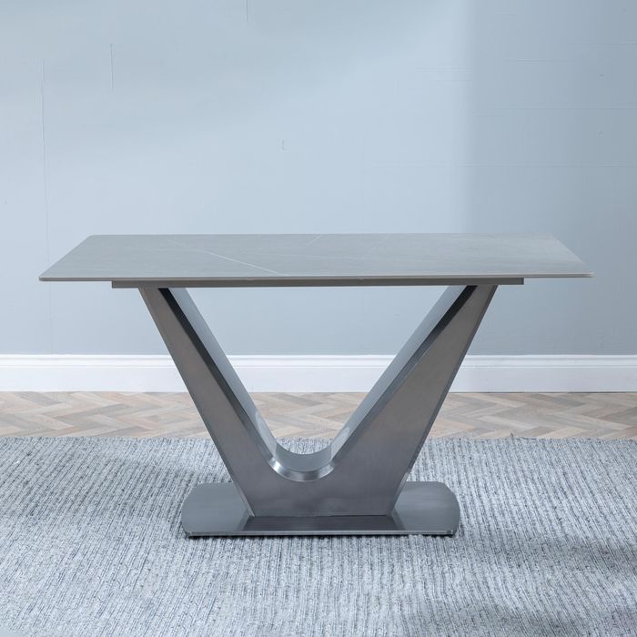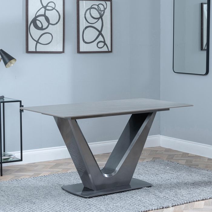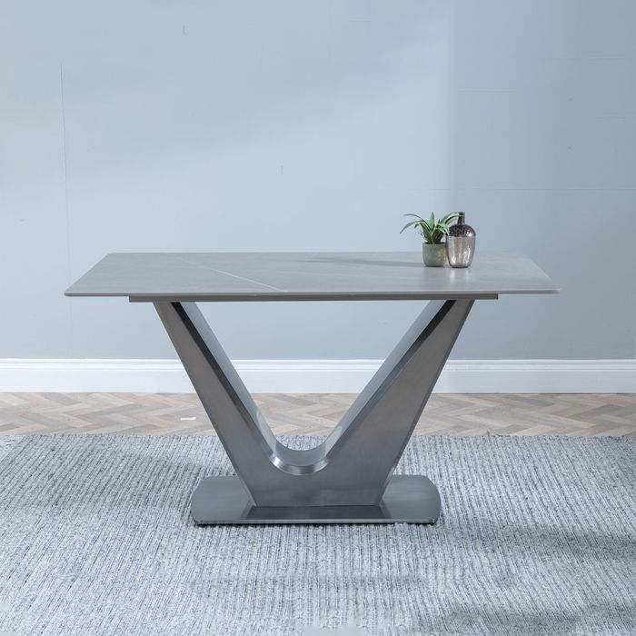 Camilla 140cm Grey Ceramic Dining Table with V Base