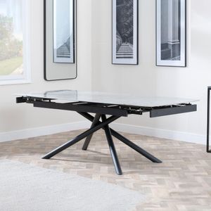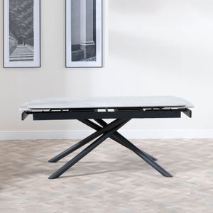 Apollo White Ceramic Extending Dining Table with Black Base - 160cm-220cm