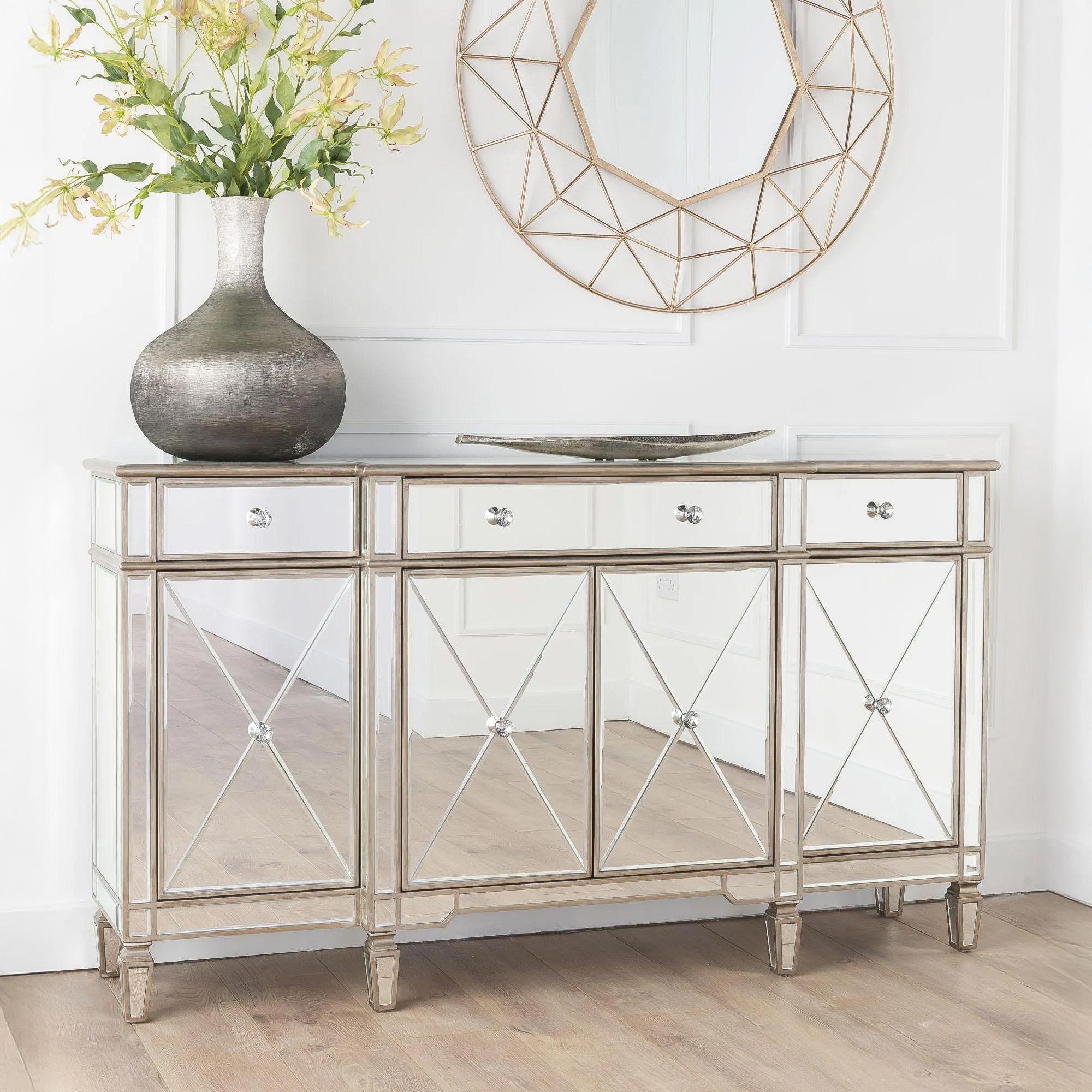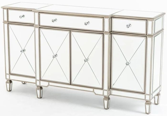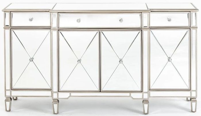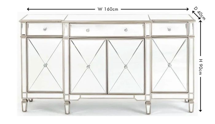 Antoinette Mirrored Champagne Trim Large Sideboard - 4 Doors