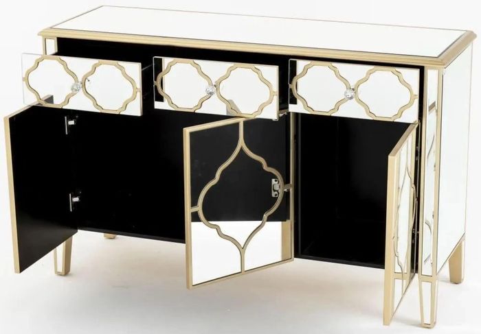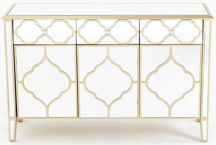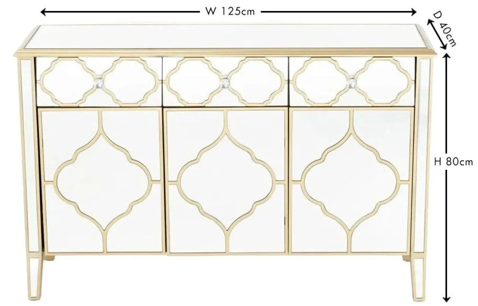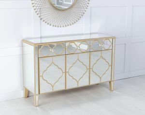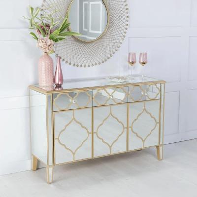 Casablanca Mirrored Gold Trim Large Sideboard - 3 Doors
