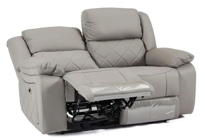 Bentley Light Grey Leather 2 Seater Recliner Sofa