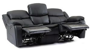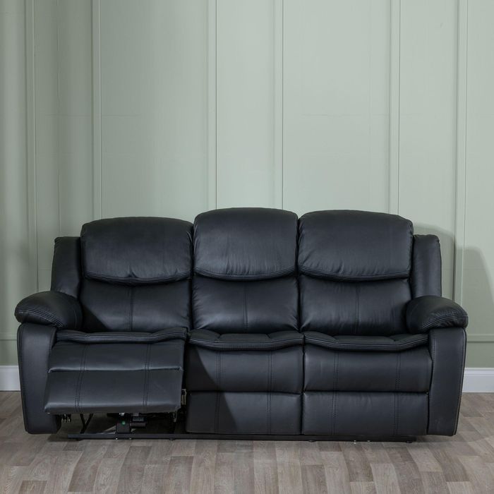 Berlin Black Leather 3 Seater Recliner Sofa